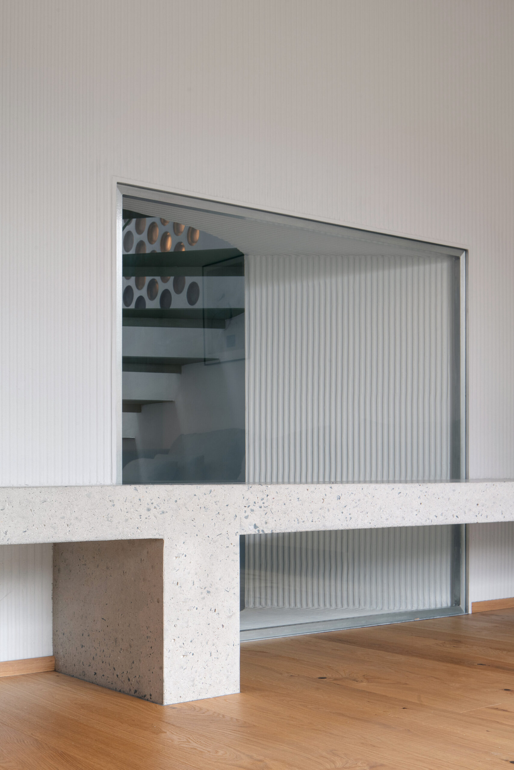 Naším hlavním záměrem bylo v domě znovuobjevit jeho paměť a původní vrstvy, kterých nebylo mnoho, a prolnout je s vrstvami novými tak, aby vzájemně tvořili celek. Hranici mezi starým a novým jsme se snažili spíše znejišťovat, než aby na ní bylo upozorňováno. Nové zásahy mají objektu přinést nové impulzy, které spočívají zejména v nečekaném propojování jednotlivých prostor domu interiérovými okny a otvory. Dům, který je určený k životu rodiny s třemi dětmi, díky tomu v interiéru lépe komunikuje, jednotlivé místnosti se navzájem otevírají a prolínají. Atmosféry a světelné nálady se vrství napříč objektem a přinášejí do domu proměnlivou a pestrou škálu vjemů.