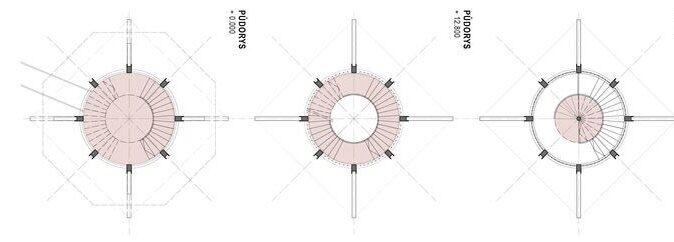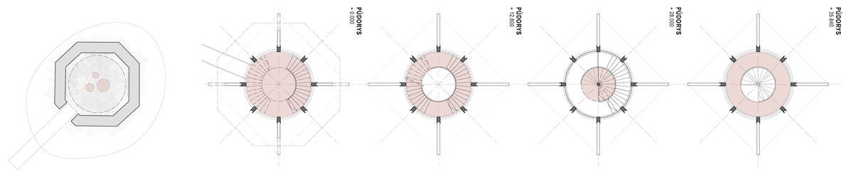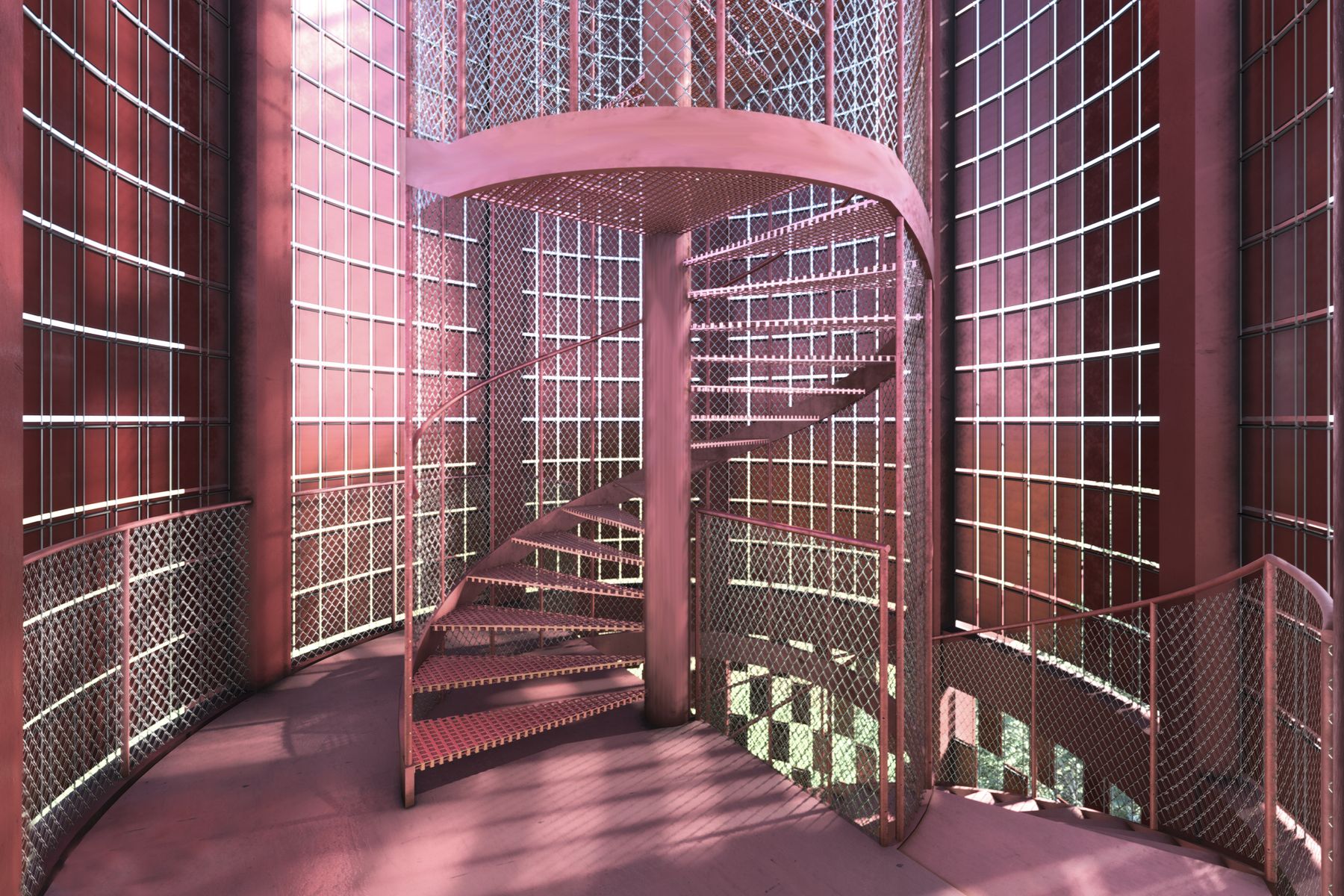 Architektonické řešení nové rozhledny vychází přímo z geometrie torza – osm sloupů uspořádaných do pravidelného osmiúhelníku přebírá půdorysný tvar historického soklu a vytváří kontinuum mezi starým a novým. Přestože z technických důvodů není možné stavět přímo na původních základech, dialog obou staveb je jednoznačný a čitelný. Vztah původní a nové rozhledny se neodehrává ostře – návrh neusiluje o kontrast, ale o návaznost, respekt a doplnění. Rozhledna se stává současnou „vertikální značkou“ města, viditelnou z širokého okolí, a současně moderním nositelem jeho identity.