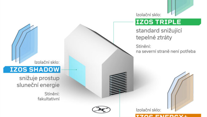 Zásadním krokem k úsporám je nenechat oknem uniknout drahocenné teplo z interiéru do exteriéru, klíčovou vlastností je tedy co nejvyšší tepelněizolační schopnost zasklení charakterizovaná součinitelem prostupu tepla Ug. Čím menší má součinitel hodnotu, tím lépe okno izoluje. V případě dvojskel se pohybuje kolem hodnoty 1,0 W/m2K, současný stavebník by se měl ale nepochybně zajímat o trojskla, kde hodnota součinitele klesá až na hodnoty pod 0,6 W/m2K. Rozdíl v ceně oproti dvojsklům není zásadní, přitom tepelněizolační schopnost je téměř dvojnásobná a dokáže zajistit úspory na vytápění až kolem 25 %. „V případě našeho sortimentu je to zasklení IZOS ENERGY+ o tloušťce 44 až 46 mm perfektně spojující všechny parametry: propouští světlo a teplo z exteriéru, a přitom si zachovává extrémně nízkou hodnotu prostupu tepla Ug 0,6 až 0,5 W/m2K směrem z interiéru. Získané teplo tedy neuniká. Jde o ideální variantu pro všechny domy, zejména pasivní, nulové, respektive energeticky úsporné.