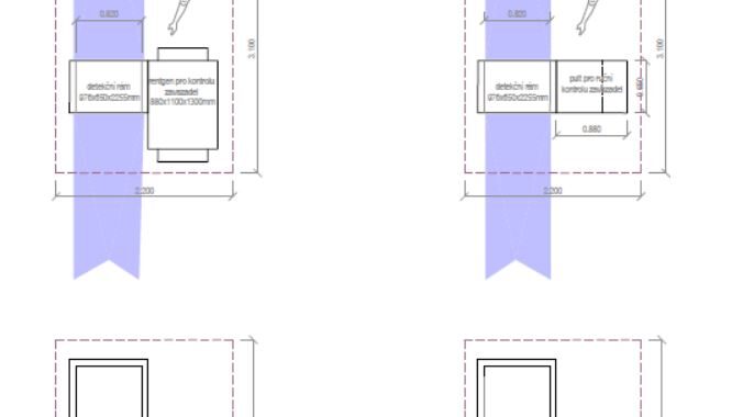 • Pro případ zavedení plošných kontrol (které nelze vyloučit) jsou zapotřebí přístřešky odpovídající rozměrům stávajících přístřešků, nicméně v současném režimu namátkových kontrol postačí na každém stanovišti pouze jeden ZÁKLADNÍ PŘÍSTŘEŠEK o vnitřních rozměrech 2,2 x 3,1 m. Z důvodu možného zavedení trvalých kontrol je zapotřebí navrhnout také variantu rozšíření v rozsahu odpovídajícímu rozměrům stávajících přístřešků. Zadavatel předpokládá modulární řešení, které umožňuje základní přístřešek doplněním dalších stejných modulů rozšířit na požadovanou velikost, nicméně odlišné řešení např. formou návrhu přístřešků dvou velikostí pro každé kontrolní stanoviště nevylučuje. V zadání se dále pracuje s termínem „modul“, který lze chápat jako rozměrovou charakteristiku základního přístřešku. Účastník soutěže musí prokázat odůvodněnost a efektivitu zvoleného principu.