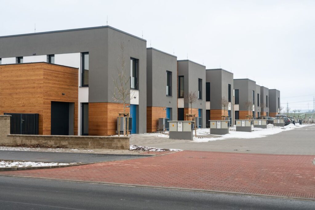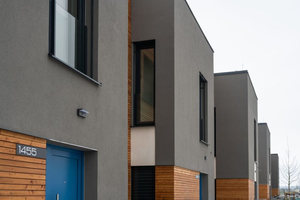Pro tento soubor domů dodala a odborně namontovala společnost VK okenní systémy, s. r. o. z Klatov celkem 142 oken. Firma zajistila kompletní realizaci zakázky – od dodávky až po precizní montáž, přičemž kladla důraz na vysokou kvalitu provedení a dlouhodobou funkčnost celého řešení. V rámci projektu společnost pracuje s prémiovým německým profilovým systémem Schüco, konkrétně s řadou Schüco Living. Tento systém splňuje přísné evropské normy a je certifikován pro maximální bezpečnost, dlouhou životnost a vysokou energetickou účinnost. Okna jsou osazena izolačním trojsklem HELUZ IZOS ENERGY+ od společnosti HELUZ IZOS, které patří mezi nejmodernější řešení v oblasti energeticky úsporné výstavby.