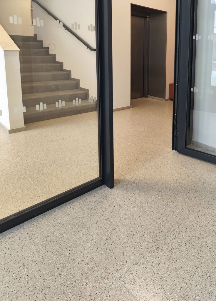 Jedním z nejčastějších materiálů pro podlahy v historických budovách – palácích, správních budovách, školách, nemocnicích, popřípadě později v obchodních prostorách a jinde – je takzvané teraco nebo teracová dlažba. Jedná se o dlouhodobě osvědčený materiál, jehož atraktivita je založena na pevnosti, odolnosti a kráse daných hlavní složkou – kamenem. Důležité je přitom také využití zkušeností s modelováním a opracováním konečné plochy.