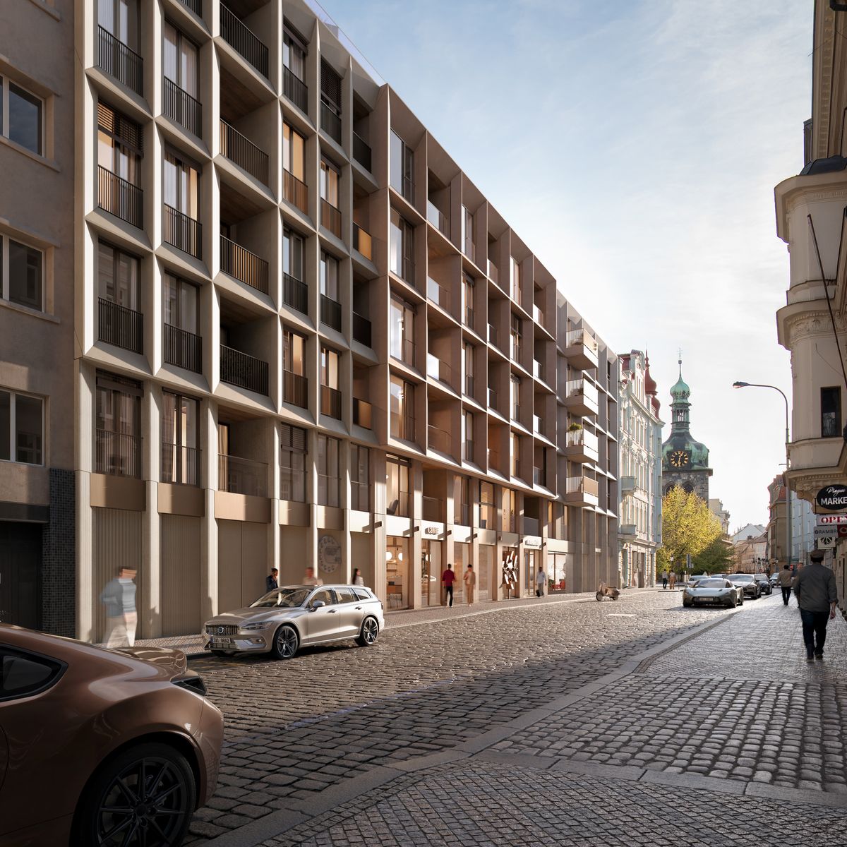 Architektonický návrh studia Pantograph vznikal ve spolupráci s památkovou péčí a zástupci městské části. Uliční fasáda je členěna do několika částí, které navazují na rytmus a měřítko historické zástavby. Výškové řešení respektuje okolní domy a součástí projektu je i zachování vybraných hodnotných prvků původního objektu.