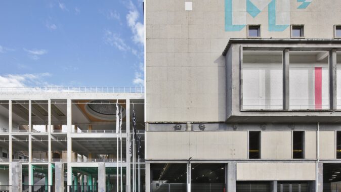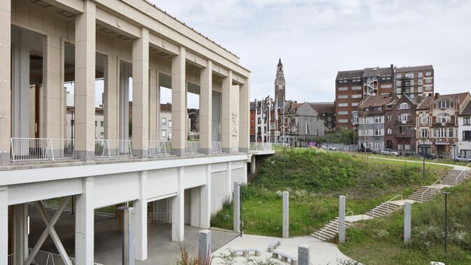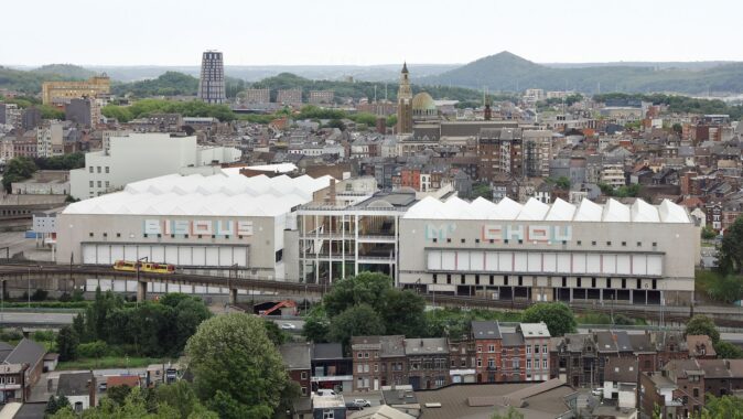 Areál Palais des Expositions vznikl v 50. letech jako rozsáhlý výstavní komplex, který měl reprezentovat průmyslovou sílu poválečného Charleroi. Sloužil pro velké obchodní a spotřební veletrhy, autosalony i populární výstavy a byl koncipován jako infrastruktura pro masové události. Od počátku měl zároveň hybridní charakter – kromě výstavních hal zahrnoval i sportovní zázemí, technické provozy či hasičskou stanici. Areál přitom navazuje na ještě starší průmyslovou vrstvu, když vznikl na místě bývalé sklárny. S útlumem průmyslu od 60. let však komplex postupně ztrácel význam a jeho využití se fragmentovalo. Velkorysé měřítko, původně výraz síly a optimismu, se proměnilo v problém – obtížně využitelnou, předimenzovanou strukturu. Právě tuto ambivalenci současná rekonstrukce obrací ve svůj hlavní zdroj.