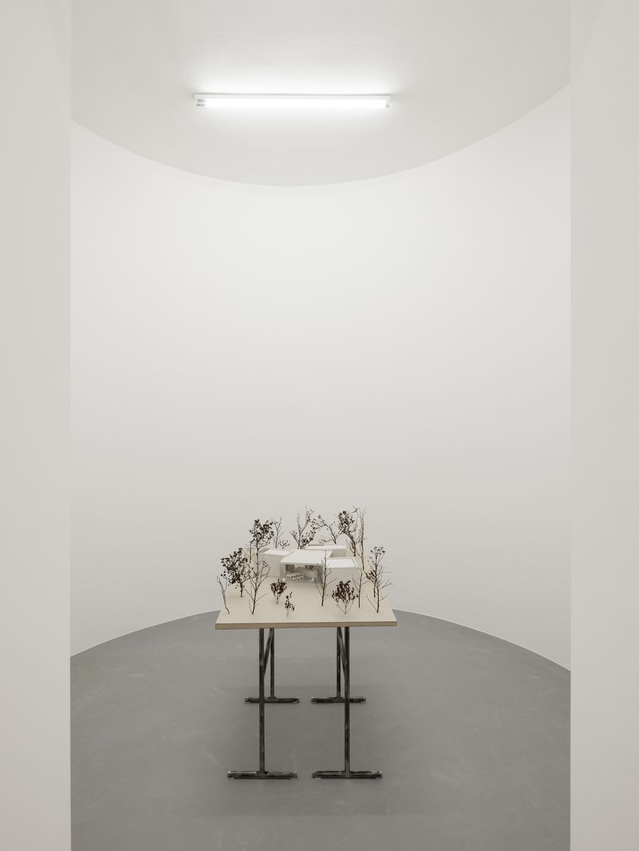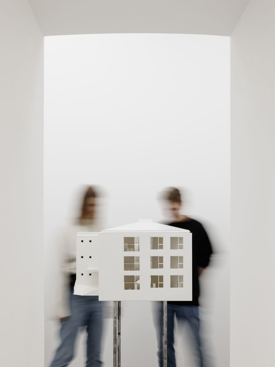 V novém „vnitřním domě“ jsou umístěny velkoformátové architektonické modely vytvořené speciálně pro tuto výstavu. Nejde jen o ukázky projektů – modely jsou samostatnými objekty, které lze obcházet, pozorovat jak zvenčí, tak zevnitř, číst jako návrhy i jako prostory. Přibližují způsob myšlení ateliéru založený na prostorové intuici, nesou atmosféru a materiálovost a v kombinaci s novým výstavním prostorem vytvářejí situace, které mají ambici být samy o sobě architekturou. Představené projekty ukazují různé fáze a měřítka práce studia – od solitérního domu v krajině po rozsáhlé veřejné stavby. Výstava začíná modelem plánované rekonstrukce Domu umění, další projekty spojuje způsob práce s kontextem, měřítkem a strukturou.